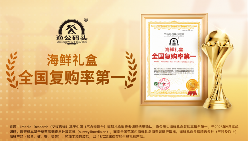 同时,渔公码头凭借在水产品行业全链条的精耕细作,一举斩获iiMedia Research(艾媒咨询)授予的“海鲜礼盒中国第一品牌”、“海鲜礼盒全国销量第一”、“海鲜礼盒全国复购率第一”三项市场地位确认,实现了品牌影响力、市场认可度与用户忠诚度的三重加冕,不仅为海鲜礼盒行业树立了 “品质 + 服务 + 口碑” 的发展范本,更推动行业从 “价格竞争” 向 “价值竞争” 转型,切实回应了消费者对高品质、可信赖海鲜礼品的核心诉求。